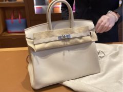 馬來西亞愛馬仕官網怎麼買 Hermes Birkin 25cm Ostrich leather 進口禦用原廠KK 南非鴕鳥皮 8L Beton 冰川白 金扣 全手工蜜蠟線縫製