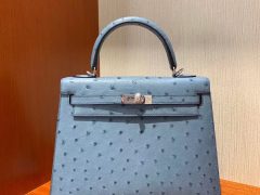 愛馬仕凱莉包澳門永利皇宮專賣店 Hermes Kelly 25cm U4 vert vertigo 絲絨綠 Ostrich 禦用原廠kk 南非鴕鳥皮 全手工蠟線縫 銀扣