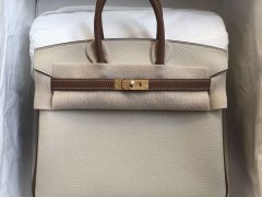 Hermes Birkin 25cm Ostrich leather 8L Beton 冰川白 金扣 全手工蜜蠟線縫製 客定出貨
