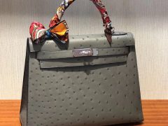 愛馬仕kelly包包價格 Hermes Kelly bag 28cm 8F錫器灰 原廠南非KK鴕鳥皮Ostrich 全手工蜜蠟線縫 金扣 銀扣金屬。