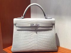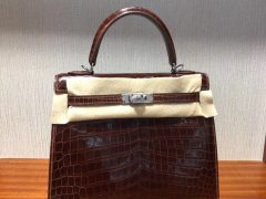 愛馬仕凱莉包價格Hermes Kelly bag 28cm 亮面鱷魚皮 J5桃紅色 金銀扣金屬 全手工蠟線縫制。