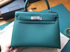 Kelly 28 Epsom Z6 Malachite 孔雀綠 外縫銀扣金屬五金