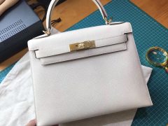 Kelly 28 Epsom CK10 奶昔白 外縫 金扣 搭配利器