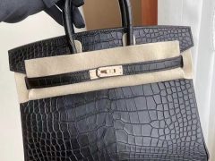 Hong Kong Hermes Birkin 25cm 亮面兩點尼羅鱷魚 CK88 Graphite 石墨灰 shiny nilo crocodile 全手工蜜蠟線縫製 銀扣
