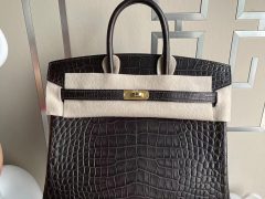 臺灣高雄市林園區鉑金包 Hermes Birkin 25cm CC89 Noir 黑色 Matte Alligator Crocodile 霧面美洲鱷魚 金扣 全手工蜜蠟線縫製客戶定製出貨