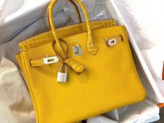 Hermes Birkin 20cm Sellier Faubourg 的特別版本,它在24 rue du Faubourg Saint Honoreé有壹個歷史悠久的愛馬仕商店,自從1880年創始人的兒子Charles-Émile接手這項業務以來,這個商店壹直在同壹個地址。車身由小牛皮夫人(Madame calfskin)制成,帶有啞光鱷魚皮襟翼,並結合了雨燕小牛皮(Swift calfskin)用於橙色雨篷、提雷特(tiret)和克洛切特(clochette)、Sombrero小牛皮(Sombrero calfskin)用於包的底部和線條細節,以及Epsom小牛皮(Epsom calfskin)用於玻璃窗面板。哦,還有clochette,是仿照標誌性的橙色愛馬仕紙袋設計的,配有“把手”!對細節的關註如此之多,妳不覺得嗎?哦,在20厘米,這絕對是壹個可愛的,是壹個肯定是收藏家的作品!