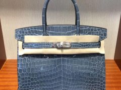 香港九龍半島愛馬仕鉑金包什麽顏色最經典 Hermes Birkin 30CM CK76 深海藍 blue indgo 霧面兩點 尼羅鱷魚 Matte Noir Crocodile 全手工蜜蠟線縫 配件:防塵袋,雨衣,盒子絲帶,禮品袋
