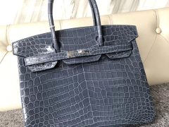 加拿大多倫多鉑金包定制價格及圖片 Toronto, Canada Hermes Birkin 25cm 亮面兩點 尼羅鱷魚 Shiny nilo crocodile CK75牛仔藍 Blue Jean 銀扣