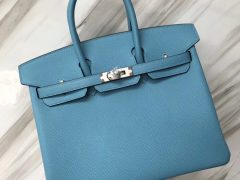 Hermes HSS Birkin 25cm 8F Etain 錫器灰/I7 琉璃藍 Blue zellige 拉絲金扣