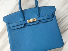 愛馬仕凱莉包臺灣臺北專賣店 Hermes Kelly 25cm 7W Blue izmir 伊茲密爾藍 Ostrich 禦用原廠kk 南非鴕鳥皮 全手工蠟線縫