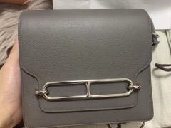 最全愛馬仕官網包包 Hermes Roulis 18cm Evercolor 2S sesame 芝麻色 內拼 K4 Rose Dete 夏日粉 銀扣