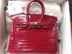 愛馬仕鉑金包 Hermes Birkin 25 鱷魚光面野生倒V 2Q 英國綠 Vert Anglais 銀扣