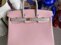 愛馬仕女包鉑金包 Hermes Birkin 25 HSS 山羊皮 3Q Rose Sakura 80 Gris Perle 金扣