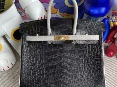 Hermes Birkin 25cm HSS美洲鱷魚89 Noir黑色 80 Gris Perle珍珠灰磨砂金扣
