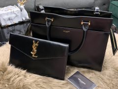 YSL ENVELOPE MEDIUM BAG 中號絎縫織紋黑色皮革信封包