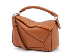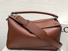 Jonathan Anderson設計的第壹款全新包袋已然成為LOEWE的標誌。憑借其創新的長方體形狀,舒適的觸感和高實用性,準確的裁切創造出了立體感,所以,從肩包到手拿包,Puzzle可以以五種不同的方式佩戴,並且可以完全折疊平整。主要特點:小牛皮制成,黑色手繪邊緣,人字紋圖案棉帆布襯裏;壹個內部插袋隔層;方便的外部拉鏈後袋,Anagram壓印點綴。