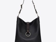 配黑色真皮包覆的ysl字母飾件、鏈條和真皮多用肩帶、中心隔層和開放式後袋。
