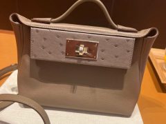 愛馬仕中國官方網站是什麼 Hermès Mini 24/24 Bag 8F Etain 錫器灰 Evercolor and Swift Golden Hardware