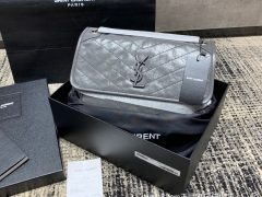 YSL ENVELOPE MEDIUM BAG 中號絎縫織紋黑色皮革信封包