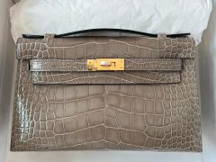 愛馬仕官方網站旗艦店 Hermès Kelly Pochette Matte Alligator Crocodile 8L Beton