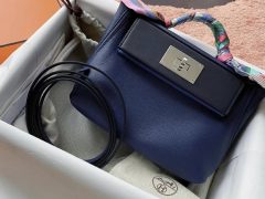 愛馬仕中國網站包包 Hermes Mini 24/24 21cm Evercolor+Lizard 73 Bleu Saphir 寶石藍 金扣 Gold hardware 全手工蜜蠟線縫制 All hand sewing