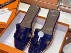 愛馬仕經典款女士涼鞋 鱷魚皮 H型拖鞋 Bahrain Hermes Oran涼鞋 89 黑色 Noir 平底涼拖鞋 全手工蜜蠟線縫製