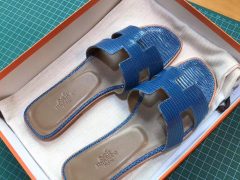 愛馬仕Hermes 經典款女士涼鞋 H型拖鞋蜥蜴皮9W Crocus 夢幻紫色 中跟,平底涼拖鞋