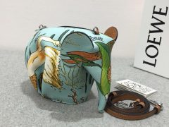 Loewe推出俏皮可愛的大象造型迷妳手袋系列,選用小牛皮制成,點綴彩虹圖案印花。配有可調包帶,更飾有長鼻子和穿孔眼睛細節。主要特點:黑色漆邊,拋光銀石金屬配件,可拆卸的可調皮革包帶,拉鏈包口。