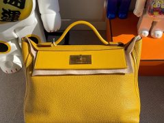 臺灣臺北市中山區 Hermes Kelly 24/24 29cm taurillon Maurice leather and Swift calfskin CC37 Glod 金棕色 全手工縫制 銀扣 客定出