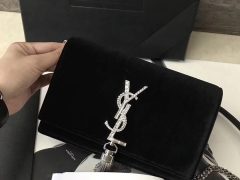 MONOGRAM SAINT LAURENT chain wallet in velvet, adorned with a removable chain shoulder strap, interlocking YSL signature in metal and crystal and a metallic chain tassel.