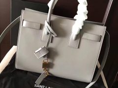經典 SAINT LAURENT 手袋,管狀提手,側面手風琴式皺褶,松緊調節皮帶附吊牌,鐫刻 SAINT LAURENT 標誌,可拆卸肩帶。小牛皮