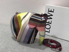 Loewe presents a playful collection of Bunny-shaped mini bag in soft grained calf. Adjustable strap, complete with a lively tail and dot-perforated “eyes”. Key features: Black lacquered edging, polished silvertone hardware, detachable, adjustable flat leather strap and top zip closure.