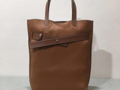 Vertical Strap Tote Bag 黑色, unisex and elegant piece with an undoubtable refined construction. Embracing strap and top handles show exquisit finishings. Lightweight, unlined interior favouring functionality. Inside pocket is sewed for more cleanliness, balancing the raw leather. Key characteristics: grained Calfskin combined with soft Calfskin and white stitching, bottom reinforcement, unlined interior, interior zip pocket, magnet closure