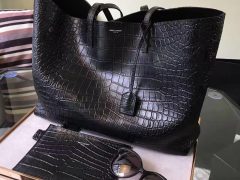 YSL聖羅蘭 經典SAINT LAURENT黑色手提包帶金屬鏈、真皮可拆卸肩帶、聯結YSL標誌搭扣和鑲鑽拼接縫合。