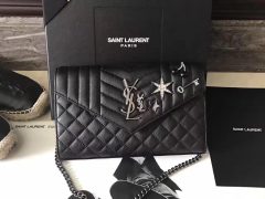 YSL ENVELOPE MEDIUM BAG 中號絎縫織紋黑色皮革信封包