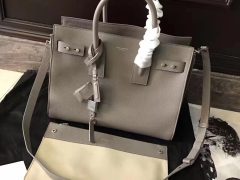 聖羅蘭YSL 小号柔和质地SAC DE JOUR包 带SAINT LAURENT标志颗粒纹绿色真皮包,柔和造型、管状手柄、侧面风琴褶、松紧调节皮带附吊牌,镌刻SAINT LAURENT标志,可拆卸、可调式肩带。