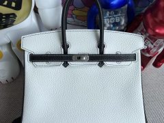 Hermès Birkin 25cm HSS 黑白熊貓 01 Pure white 純白色+黑色拉絲銀扣馬蹄印