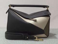 Barcelona bag is meticulously handcrafted from soft grained calfskin. Its streamlined shape is enriched with distinctive geometric detailing, a unique metallic triangle closure with embossed Logo. Adjust the slim calf leather strap to suit your carrying style on the shoulder or as a crossbody bag. This structured piece opens to two internal compartments and has a central slit pocket for securing small items. Barcelona手袋最早於2015秋冬系列面世,是繼Puzzle手袋後,品牌創意總監Jonathan Anderson推出的又壹It Bag。設計師將信封狀包型與從Loewe archives得到靈感的幾何形狀包扣結合,融合美學與功能性,包扣是由金屬和牛皮組合成的三角形,極具現代感。