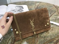 聖羅蘭 2018秋冬新款經典YSL包包 KATE 中號飾釘黑色麂皮流苏穗链鏈條包