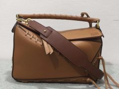 Puzzle Laced Bag 黑色 由橋納森·安德森設計的第壹個全新的包包已經成為壹個LOEWE圖標。 拼圖的圖案裝飾著皮革鞋帶縫合在其所有的接縫和切口。 憑借其創新的長方體形狀,極致的觸感和最大的實用性,通過精確的切割產生體積,因此它可以以五種不同的方式穿戴,從肩包到離合器,並完全折疊直到它平整。 主要特點:由雙色小牛皮制成,壓花Anagram,手繪邊緣,紡織襯裏,兩個口袋裏面和壹個拉鏈口袋外面,金色五金。 可拆卸的可調節表帶,最舒這的長度。