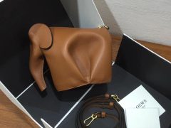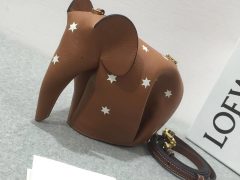 Loewe presents a playful collection of Elephant-shaped mini bags in calf leather with adjustable strap, complete with a long trunk and dot-perforated “eyes.” Key features: Black lacquered edging, polished silvertone hardware, Detachable, adjustable flat leather strap and Top zip closure. Loewe著名的大象造型迷你手袋,选用金属色小牛皮制成,配有可调包带。