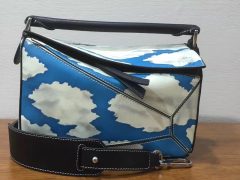 2017 loewe羅意威 Puzzle Bag 最新顏色藍天白雲,整個包身以藍天白云為主題,背上它會是一道獨特的風景線。眾多明星喜愛,進口西班牙小牛皮紡織內襯通過精密切割使它可自然摺疊出各種形狀多種用法深得眾多明星喜愛。