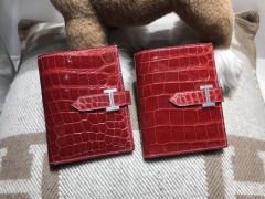 Hermes bearn 短款鱷魚錢夾Q5 Rouge Cossacks 國旗紅