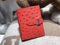 Hermes bearn 鴕鳥錢包 兩折短款錢夾 S5 Rouge Tomate 番茄紅