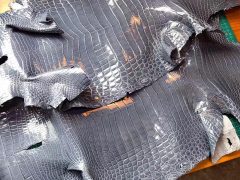 成年公牛皮(頸部皮),表面類似荔枝紋,外形非常挺拔、較硬,皮質顆粒比較大,顏色非常豐富,有壹點光澤。