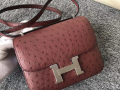 新北市林口區 愛馬仕 Hermes Constance 19cm Ostrich 55 Rouge H 愛馬仕紅