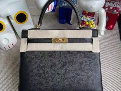 Hermes Kelly 25cm Chevre Mysore 89 Noir 黑色內拼 Q5 Rose casaque 拉絲金扣