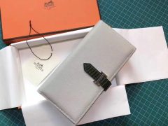 愛馬仕臺灣桃園機場免稅店 Hermes Bearn Short Wallet Madame 小牛皮 大象灰