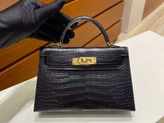愛馬仕凱莉迷你包專櫃價格 Hermès Kelly mini II 2代 73 Bleu Saphir 寶石藍 亮面美洲鱷魚 Shiny alligator crocodile 銀扣 Silver hardware 全手工蜜蠟線縫製 in stock