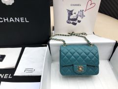小香經典口蓋包Mini Classic Flap Bag 湖水綠色 小牛皮菱格鏈條經典口蓋包金色金屬